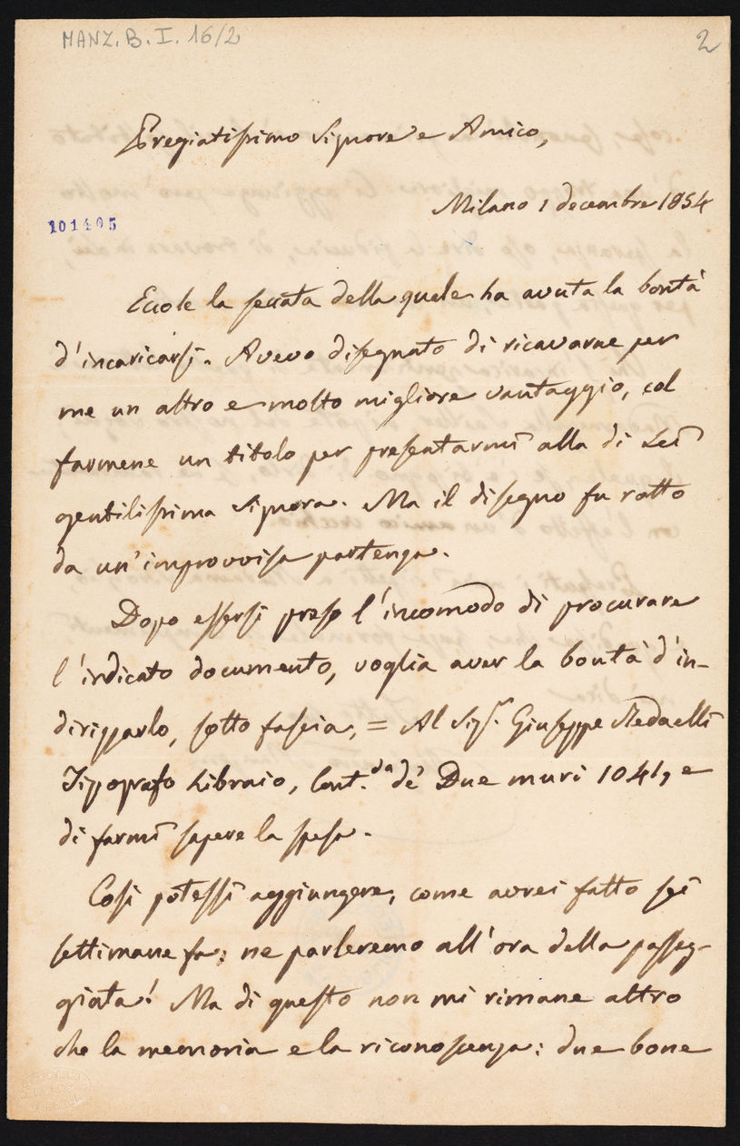 After having taken the trouble to procure the indicated document, would you be so kind as to address it, under wrap, to: = Mr. Giuseppe Redaelli, Printer and Bookseller, Contrada de’ Due Muri 1041, = and let me know the cost.